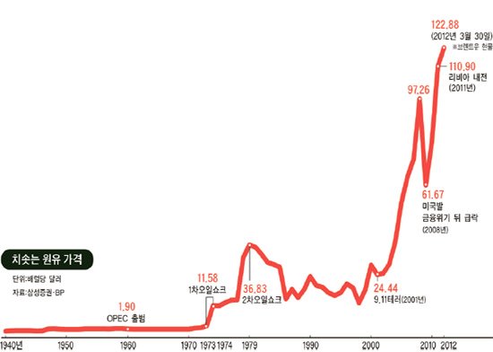 굳이 보면 현 시대는 70년대에서 80년대 초의 오일쇼크 시대에 가까울 겁니다. 우리나라로 치면 박정희 유신 시기였지요. 물론 그때만큼 대재앙은 아니긴 합니다. 1차 오일쇼크때는 배럴당 2.9달러 하던 원유가 한달만에 12달러로 4배 넘게 올랐었고, 그 때문에 우리나라도 1974년과 1975년에는 물가상승률이 연마다 25% 수준이어서 유신정권이 온갖 무리수를 두게 되었었거든요. 그리고 2차 오일쇼크때는 요새 이름 언급되는 연준 의장 볼커가 기준금리를 21%까지 올리면서 지미 카터가 재선에 실패하는 참사가 벌어지지요. 그리고 우리나라는 그 여파로 박정희에 대한 반발이 심해져 부마항쟁이 일어났고, 강경진압안이 나와 그에 반대한 김재규가 박정희를 피살하게 됩니다.