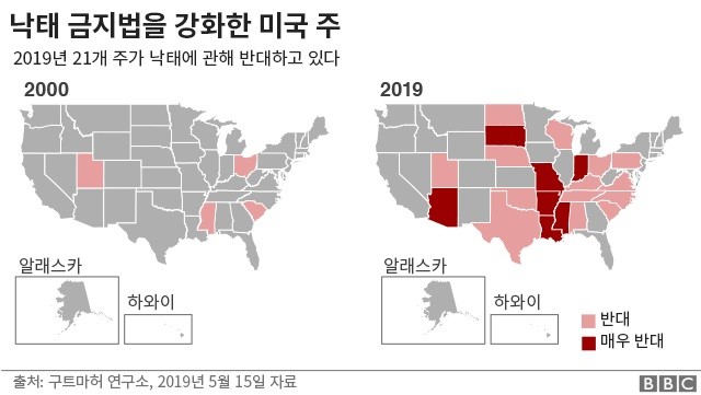 그리고 실제로 로 대 웨이드 판례가 엎어져서 각 주 법률이 그대로 적용되면 어떻게 되느냐 하면, 텍사스, 앨라배마, 와이오밍, 켄터키, 미시시피, 루이지애나, 오하이오 등의 주에서는 낙태가 불법이고 산모는 물론 시술한 의사도 강하게 처벌받는데, 예외가 없습니다. 강간이나 근친상간으로 인한 임신이건, 태아가 장애아건 상관없이 출산해야 합니다.