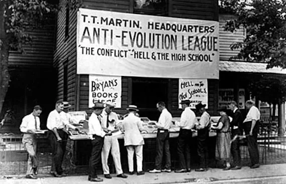 테네시 주에서는 1925년에 기독교 근본주의자들에 의해 대학을 비롯한 학교에서 진화론을 가르칠 수 없다는 버틀러 법이 통과된 적이 있습니다. 그 때 그에 반발한 생물교사 존 스콥스가 버틀러법 위반 혐의로 스스로를 고소하고, 연방대법원까지 가서 문제를 해결하려고 했지만 2심 주 상급법원에서 법리적 문제로 원고패소판결을 내려버리는 해프닝도 있었습니다. 그래서 버틀러 법은 테네시 주에서 1968년까지 남아있었지요.