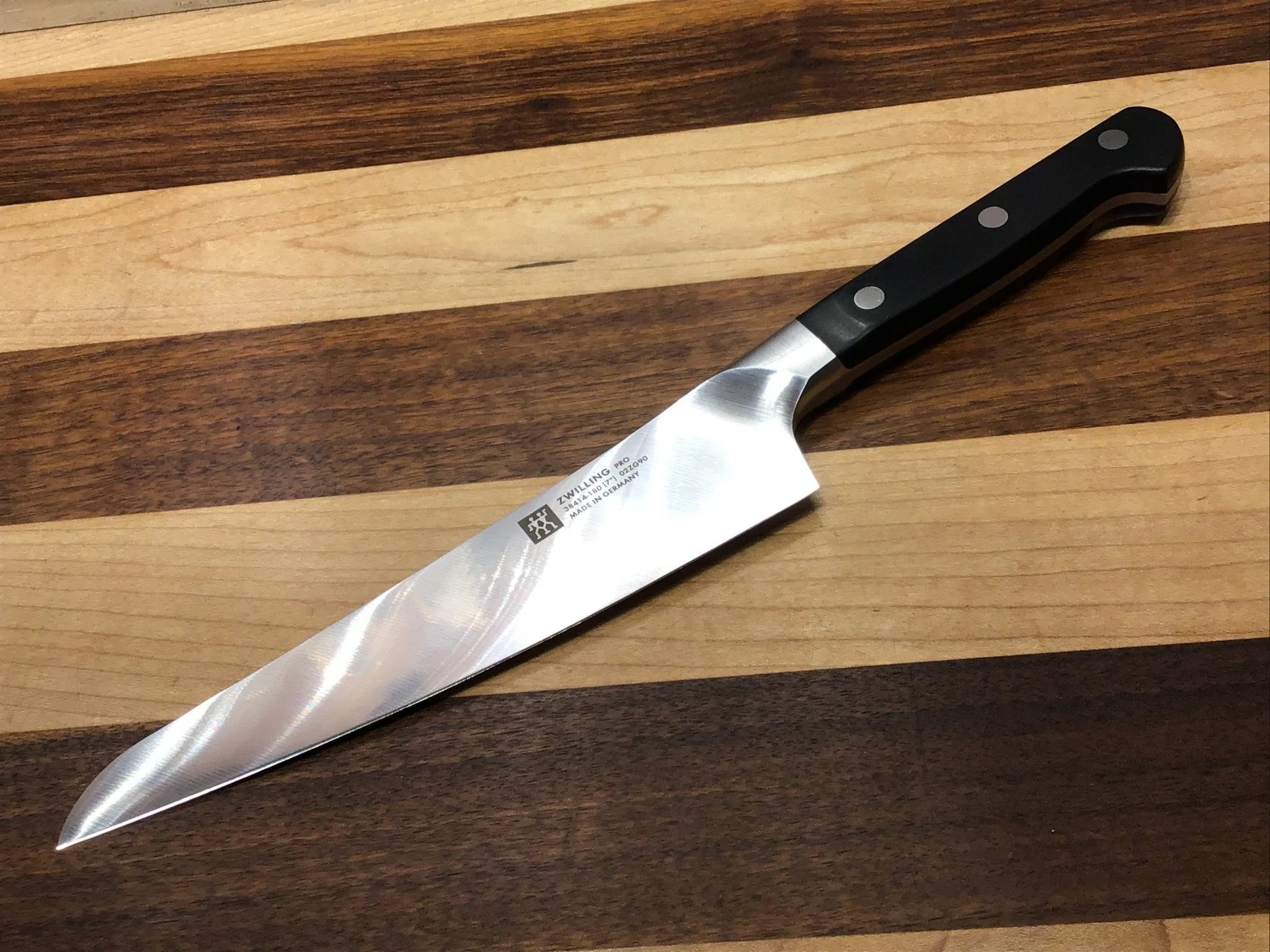 Petty는 작다는 뜻입니다. 프랑스어 Petit(쁘띠)와 동일한 어원을 가진 단어고요. Paring및 Peeling은 껍질 등을 벗긴다는 뜻입니다. 유틸리티 나이프는 다용도 칼을 의미하는데, 페티/페어링/필링과 동일한 나이프를 의미할 때도 있고, 작은 서레이티드(톱날이 있는) 나이프를 포함한 분류를 의미할 때도 있습니다. 그렇지만 나이프 세트에 ‘유틸리티 나이프’가 있을 경우 과도라고 생각하면 됩니다. 식생활에 따른 개인차는 있지만, 대체로 많이 사용하게 되는 칼이지요.