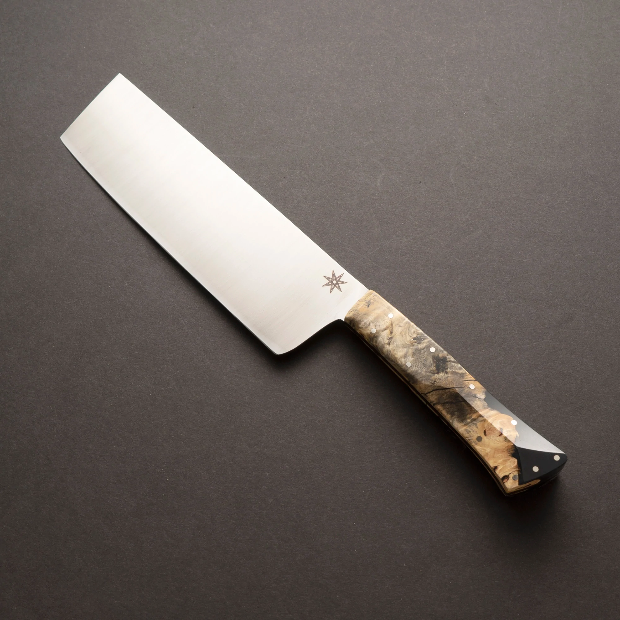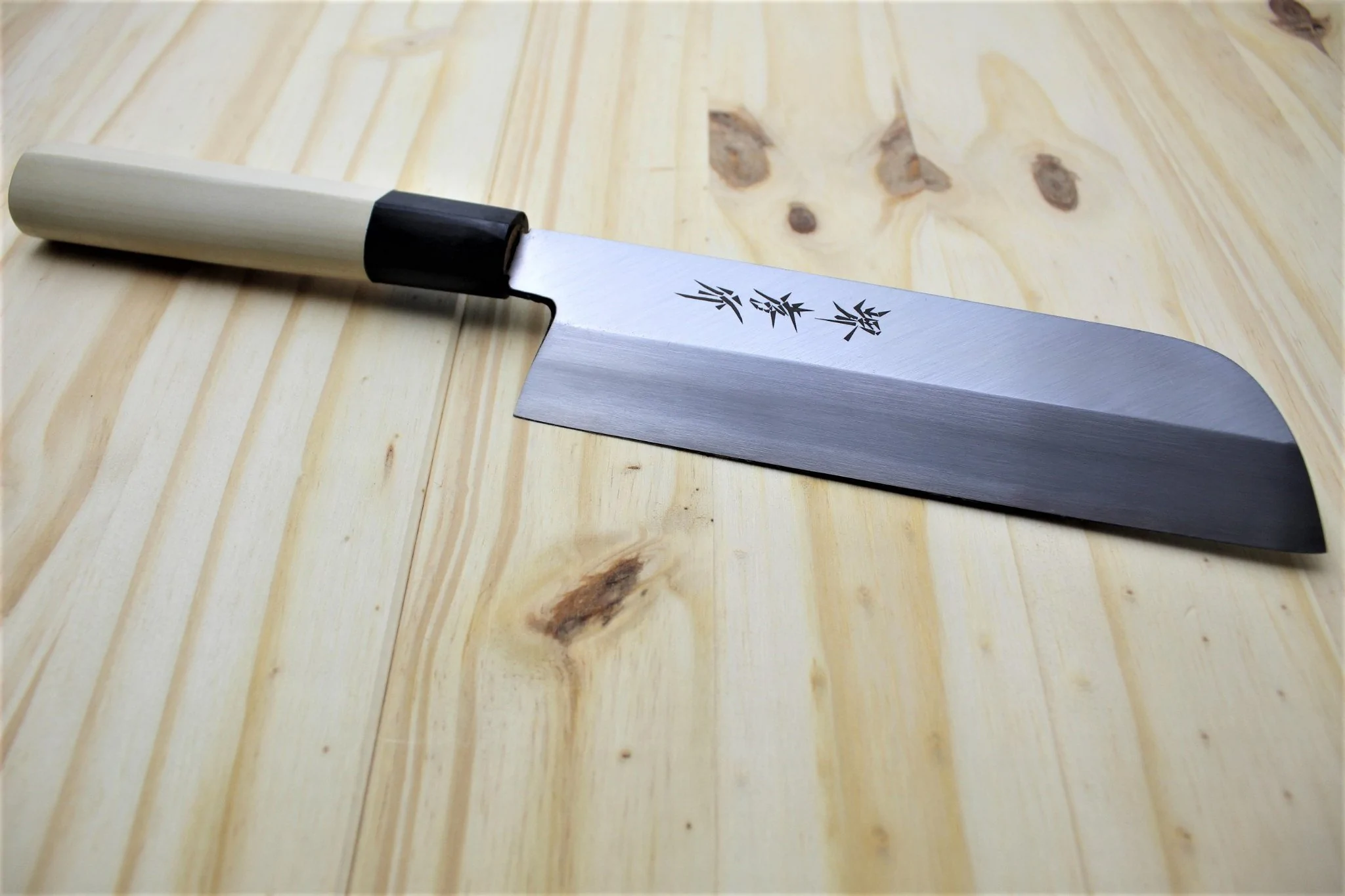 채소 써는 일본식 칼입니다. 채썰기, 돌려깎기 등 다양한 채소 작업에 씁니다. 곡률이 전혀 없고, 한 면만 날을 세운 편삼각 날입니다. 관동형과 관서형이 있는데, 관동형은 끝이 네모지고 관서형은 끝 쪽 날 반대쪽이 둥급니다.