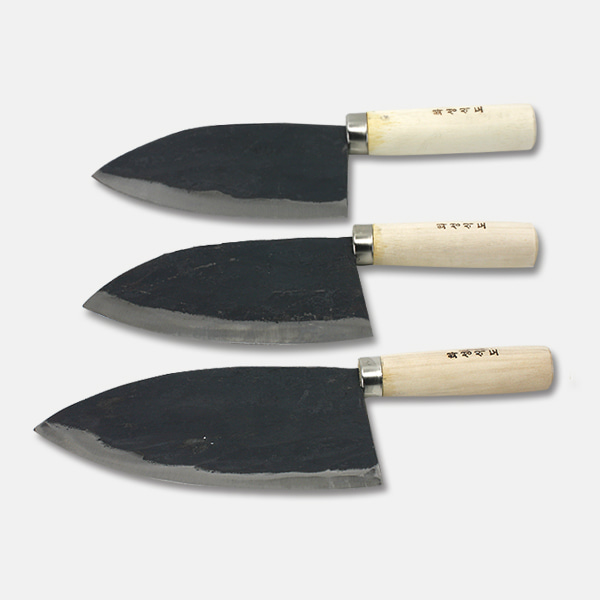 아마도 우리나라 가정 주방에서 가장 일반적인 식칼입니다. 일본에서 기원한 식칼로, 한자로는 三德입니다. 우리나라 한자독음으로는 삼덕(三德)이라 ‘삼덕칼’이라는 표현도 씁니다. 지금은 세계 어디에서나 쓰는 칼이 되어있지요.