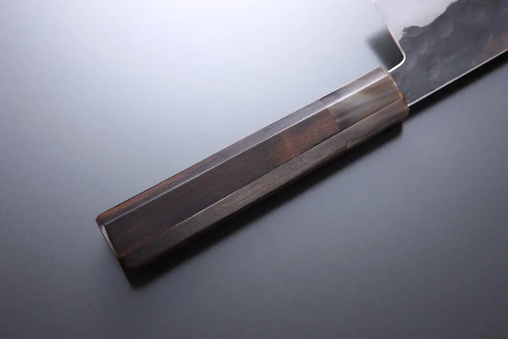 회칼의 일종이지만 야나기와는 용도가 다르기 때문에 데바의 날은 높은 경도가 아닌 높은 인성 및 강도가 요구됩니다. 그래서 일본식 주방칼은 날물의 경도가 중시되는 경향이 있음에도 유독 데바는 예외적으로 경도가 덜 중시되는 편입니다.