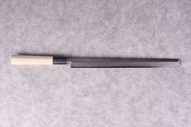 예전에 관동에서는 야나기가 아니라 타코히키가 일반적인 회칼이었다고 합니다. 그런데 지금은 야나기를 주로 쓰고요. 회 전반에 사용할 수 있는 칼인데, 야나기와는 달리 끝이 네모납니다. 찔려서 다칠 위험이 없지요. 다만 끝모양을 다듬으면 사키마루가 되기 때문에, 사키마루 중에는 사키마루 타코히키 같은 이름이 붙은 것들이 있습니다. 이름 뜻은 문어칼인데, 문어만 잘라야 하는 칼은 아닙니다.