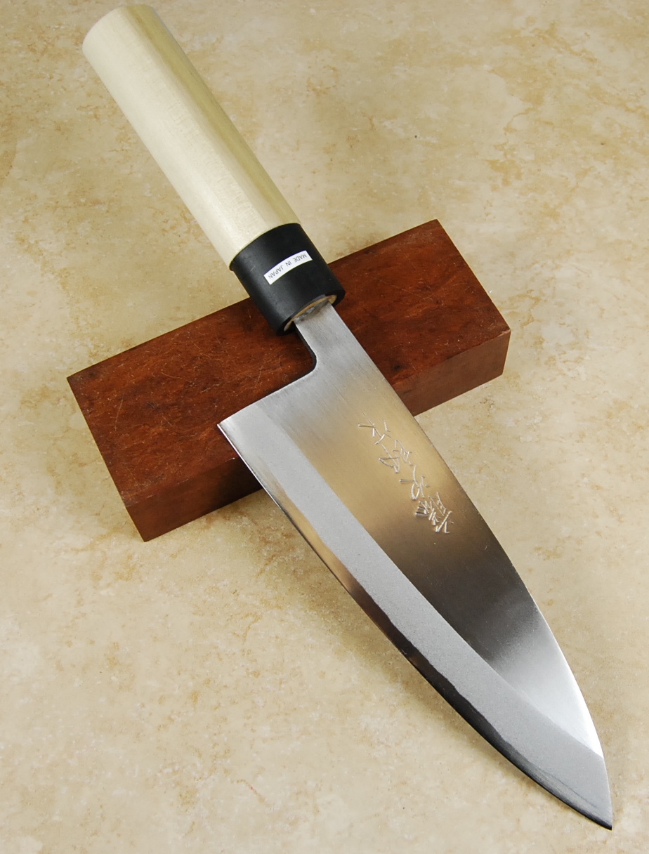 생선 잡는 칼입니다. 사진으로 얼핏 보기에는 규토나 막칼처럼 생겼지만, 실제로 보면 칼등이 두껍고 편삼각으로 날을 세우는 회칼이고 전체적인 형태도 다릅니다. 생선 비늘이나 점액질을 긁을 때, 그리고 생선 머리를 떼어낼 때 씁니다. 묵직한 칼이지만 동시에 제법 예리하게 날을 세우는 칼입니다. 이 데바로 생선 껍질을 벗기고, 뼈에서 살을 분리하고 살덩이로 만드는 작업(오로시)까지, 심지어 회를 저미기까지 다 하는 경우도 많습니다.